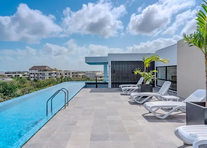 Ofreciendo vistas a la calle, el apartamento 2 Bdr Penthouse, Private Pool, Rooftop And Gym Tulum se encuentra a 2 km de la Pirámide del Pensamiento Positivo en Tulum. Este apartamento cuenta con WiFi en toda la propiedad.